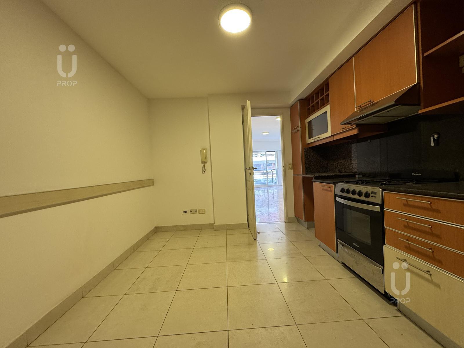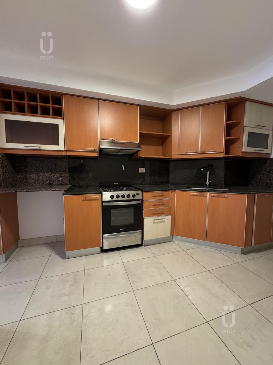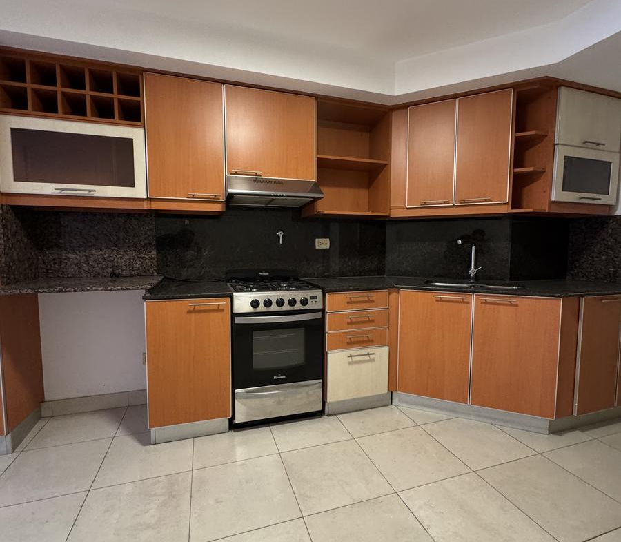 Cocina comedor de generosas dimensiones con mobiliario bajo mesada y alacenas a medida.