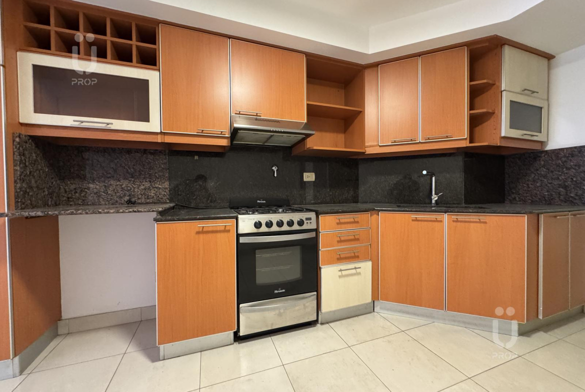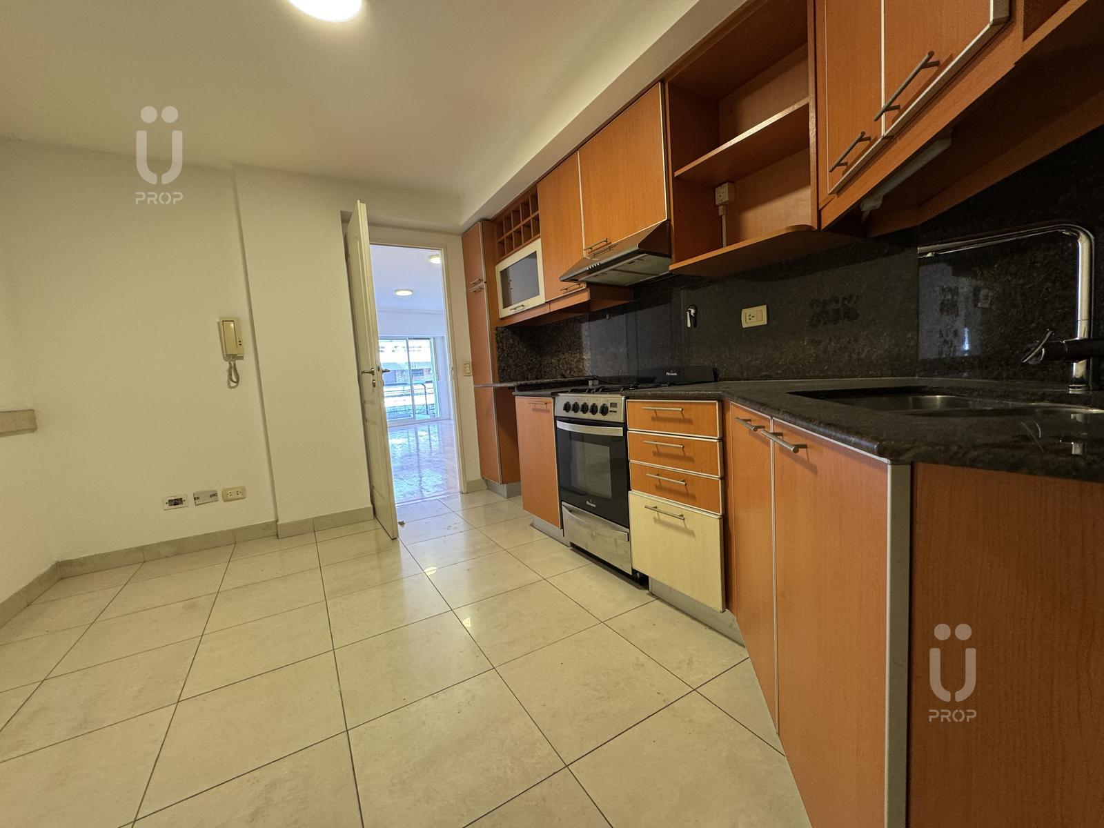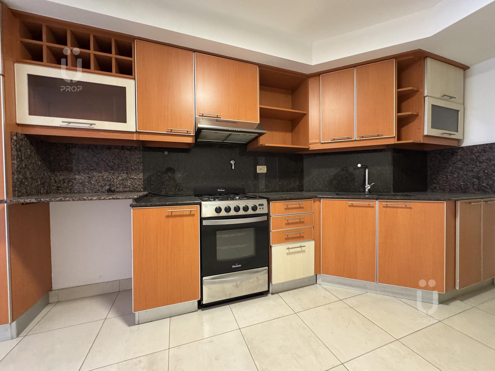 Cocina comedor de generosas dimensiones con mobiliario bajo mesada y alacenas a medida.