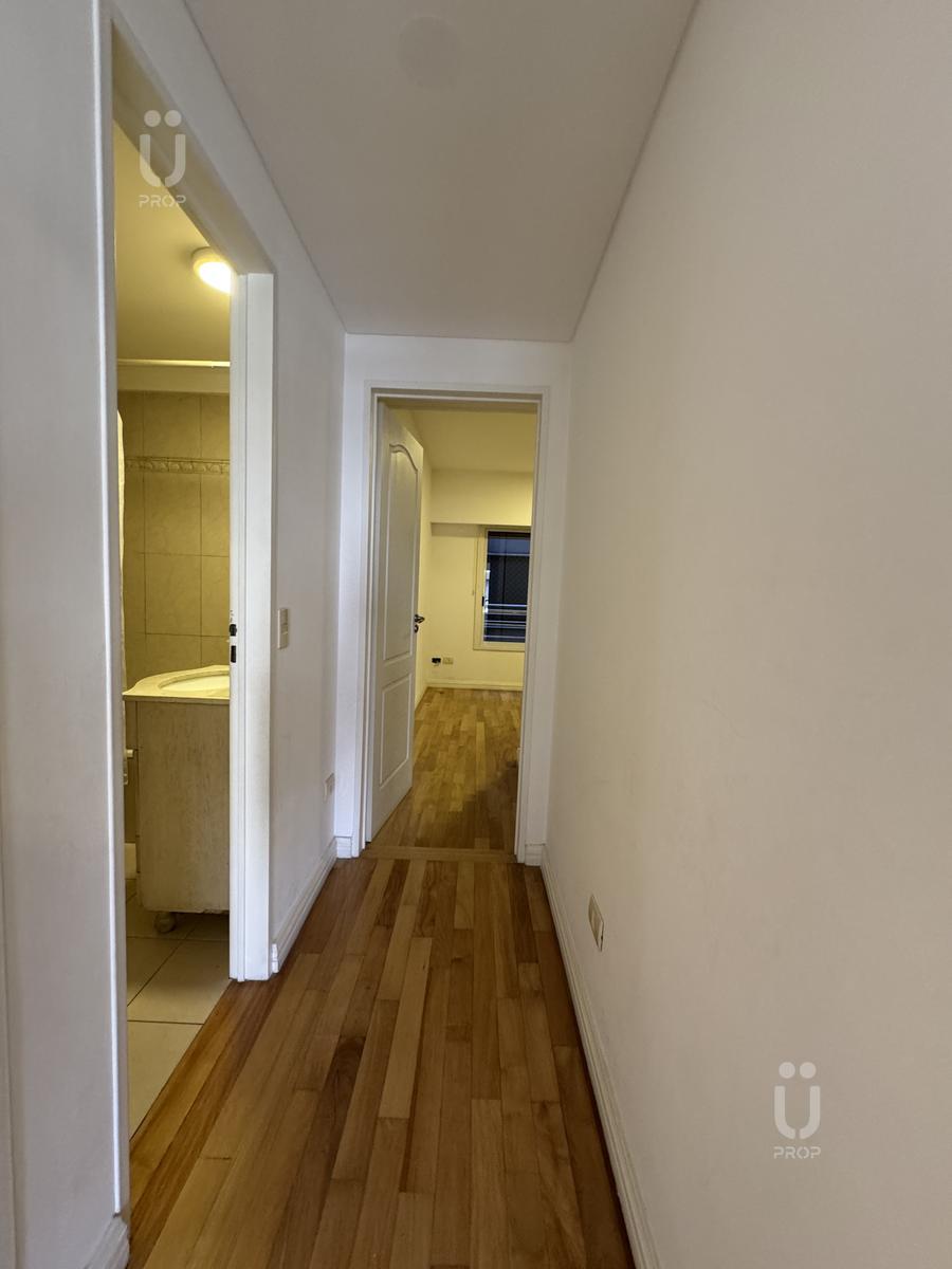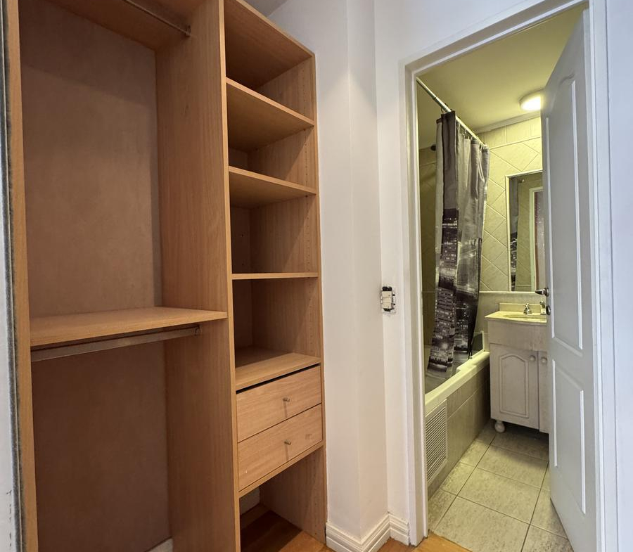 El pasillo conector cuenta con un placard empotrado con interiores terminados, brindando espacio de guardado extra.