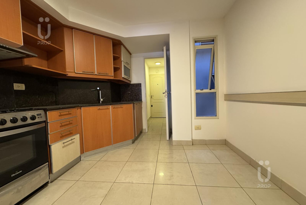 Segundo dormitorio amplio, con ventana al aire luz del edificio, ideal para un ambiente silencioso de descanso.