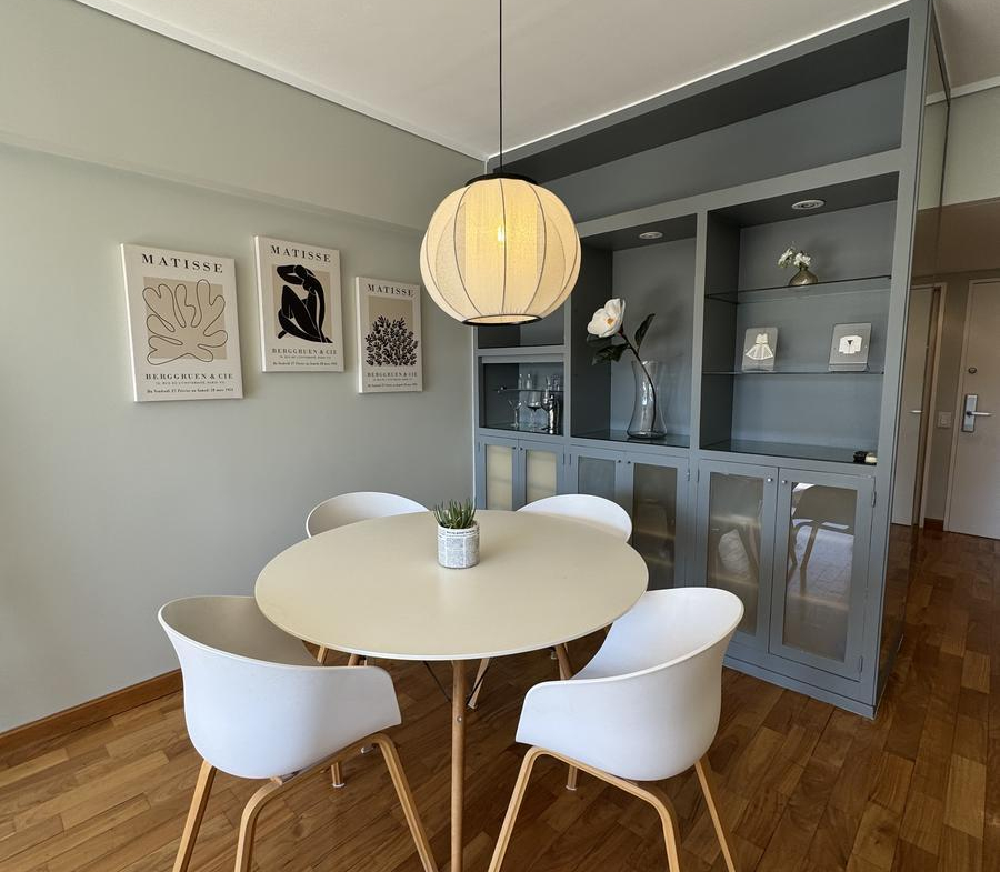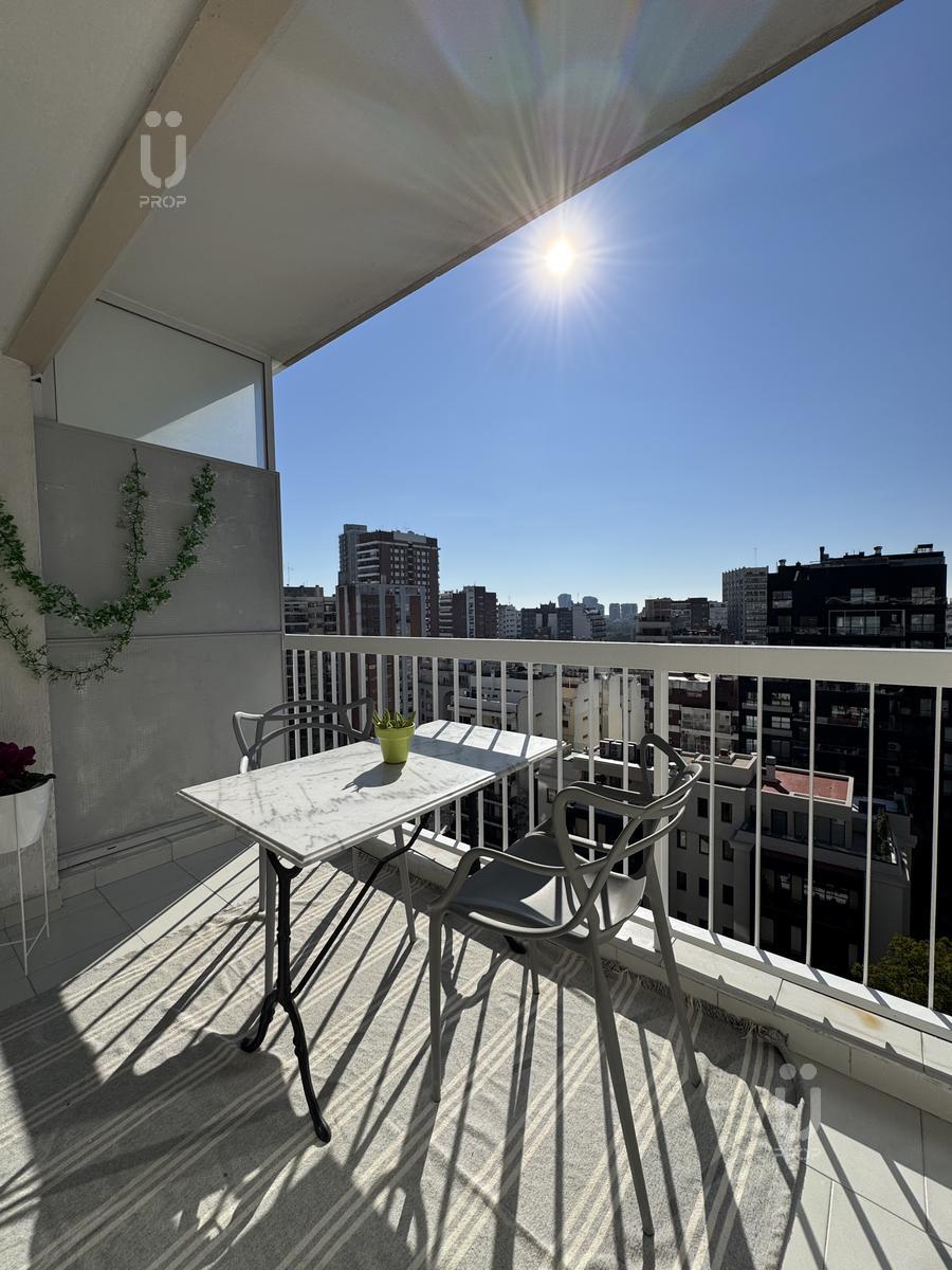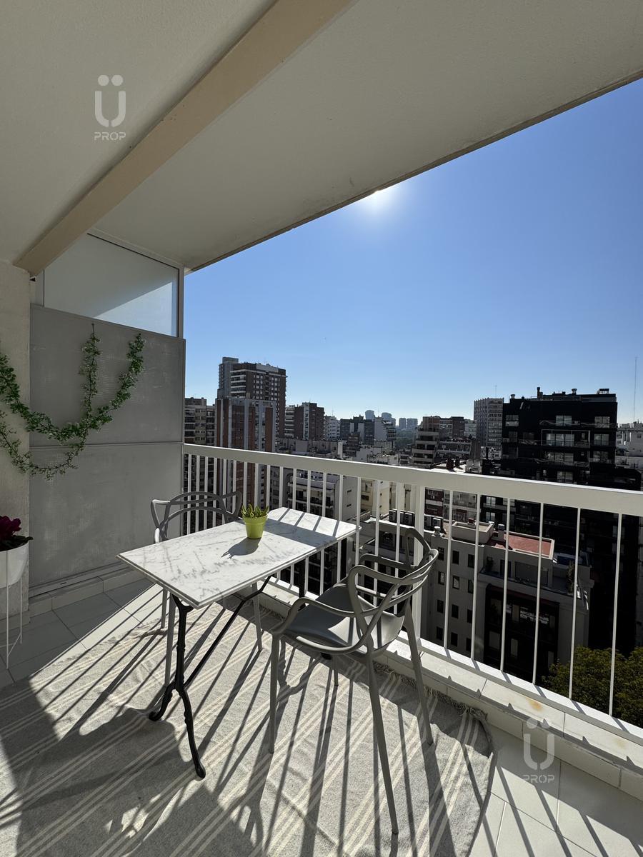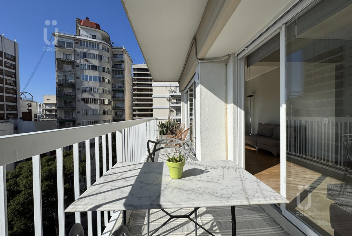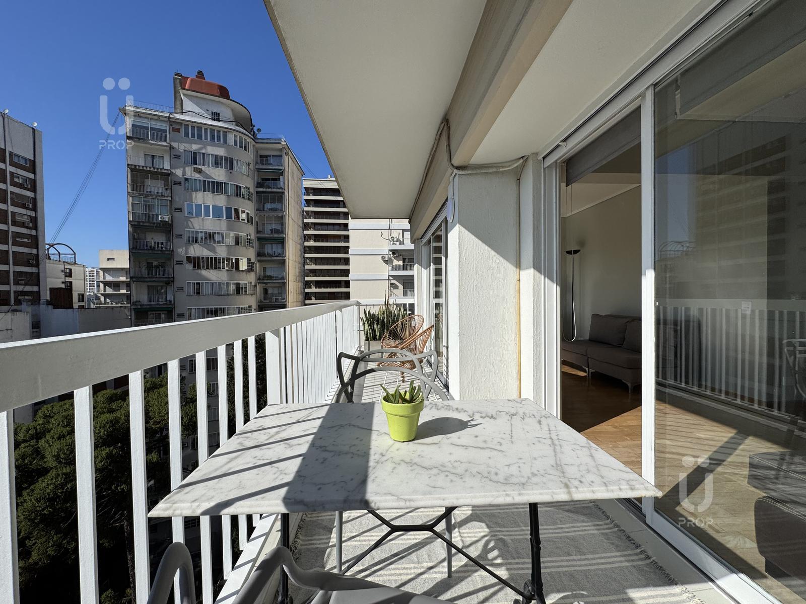 Esta propiedad es un semi piso y cuenta con un amplio living comedor con disposición de L y en el mismo posee un sofá de tres cuerpos muy cómodo con camastro de cuero, alfombra de piso, mesa de centro, mesa ratona con un velador de diseño, mesa nórdica con cuatro sillas, mueble vitrina con copas y artículos de decoración, perchero de pie, aire acondicionado split, Internet Wi Fi, rack TV smart, sillón de dos cuerpos muy cómodo y puertas ventana corredizas con salida al balcón con vista abierta al contra frente de la unidad. Posee increíble luz natural y muy buena circulación de aire. El balcón cuenta con dos juegos de jardín de mesas y sillas.