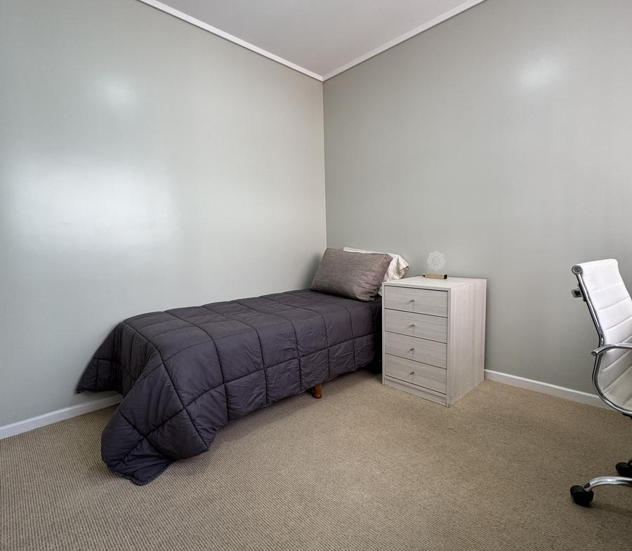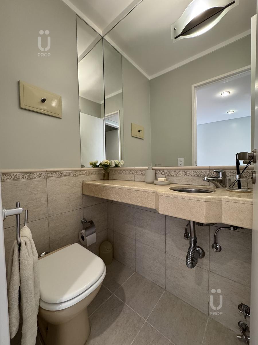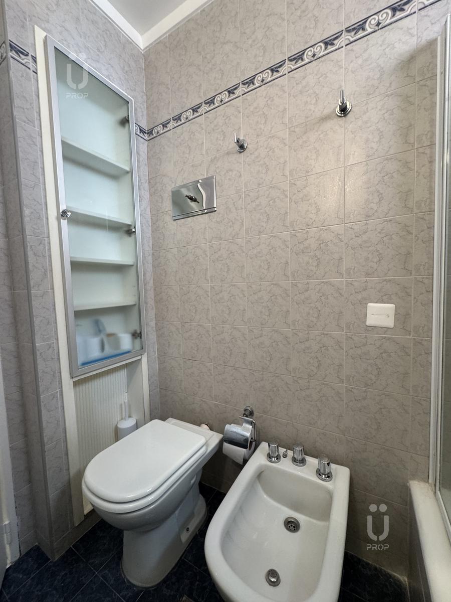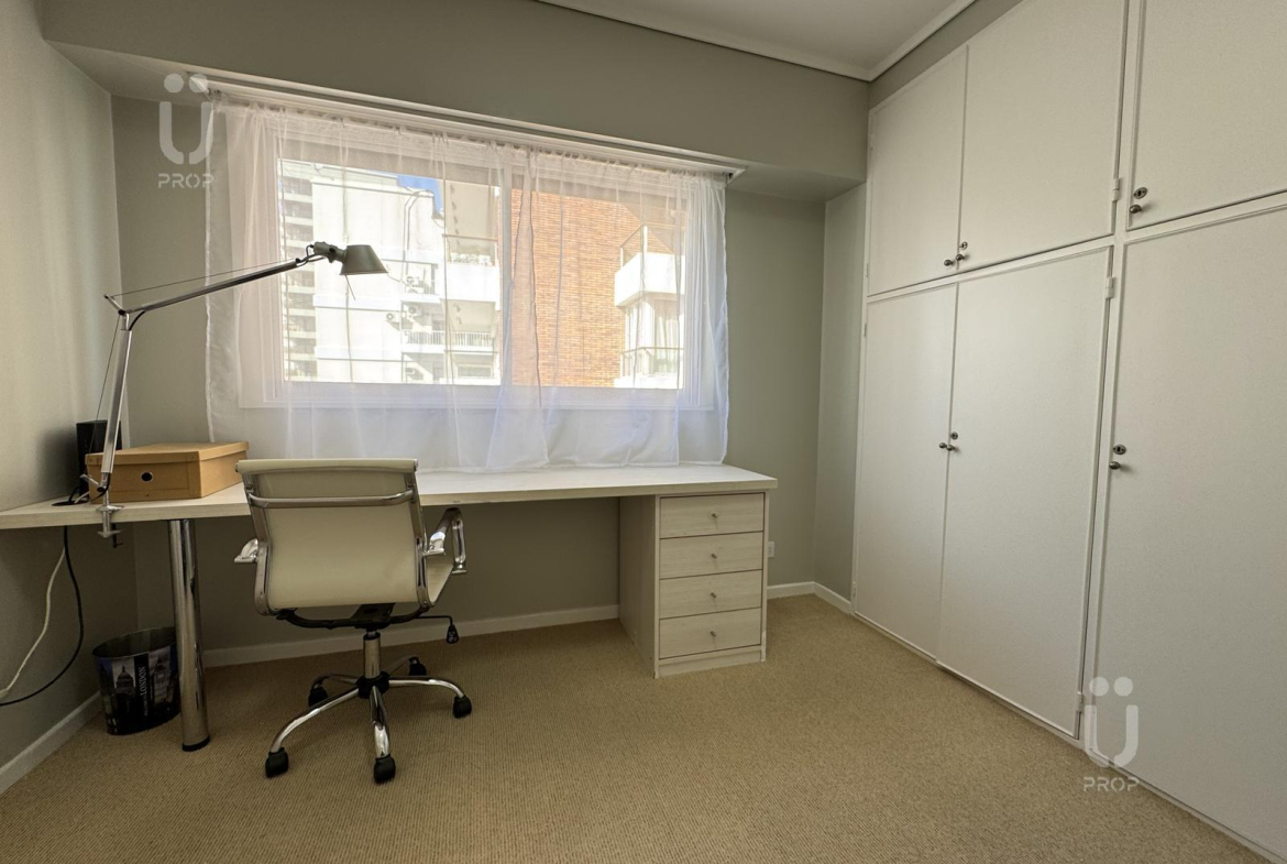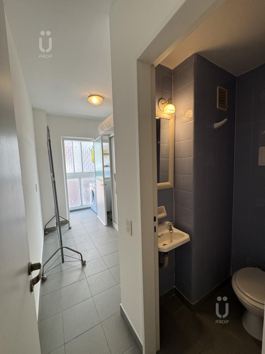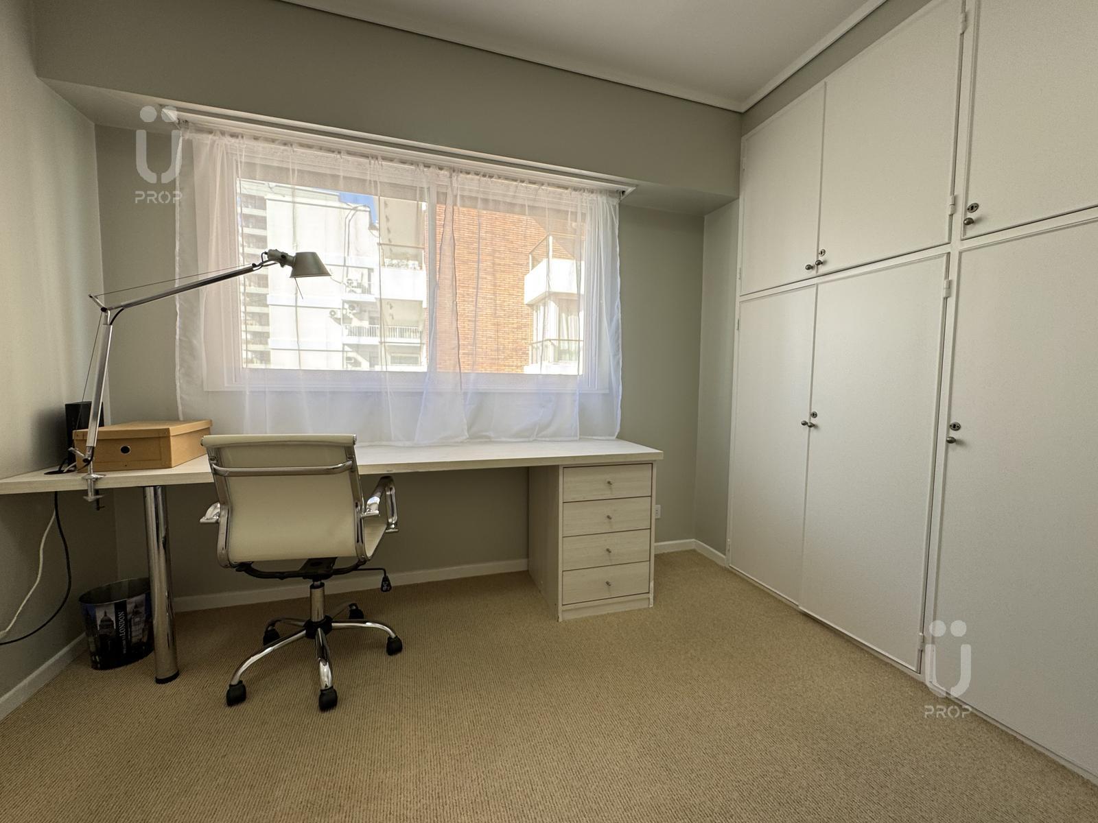 El dormitorio secundario cuenta con cama tipo sommier de una plaza y mesa de luz con veladores. Ideal para trabajar desde el hogar, con su respectiva lámpara y mesa de escritorio. Cuenta con placar empotrado con gran espacio de guardado, ventanas con vista al contra frente de la unidad, lo que proporciona excelente luz natural y muy buena circulación de aire. Posee un toilette de uso social en el sector del living cerca del pasillo que nos conduce a la cocina.